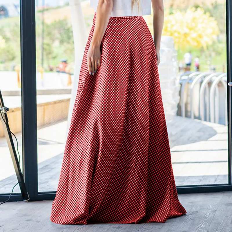 Model Number: Oversized Ladies Checked Long Skirts with Sashes